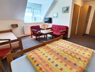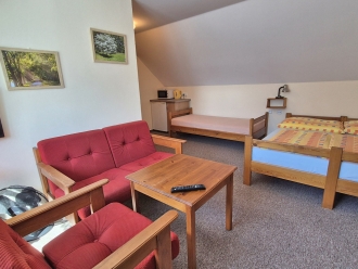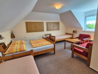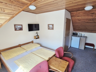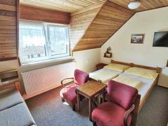 Třílůžkový pokoj se nachází v prvním patře penzionu